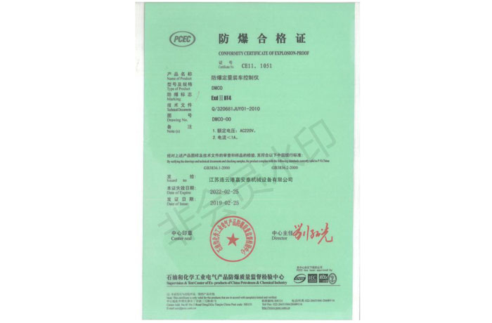 資信等級證書裝車鶴管適用于汽、煤、柴油,液態化工介質汽車、頂部裝卸車。裝車鶴管可以分為三類,分別是:全自動鶴管、氣動帶手動鶴管、手動鶴管。裝車鶴管還有三個特殊功能,分別是:氣相回收,伴熱保溫,變形產品。 鶴管操作規則流程: a.鶴管在裝車前,操作人員需要對油庫油臺設施的完好性進行檢查,檢查靜電接地線,確保油車主梁上緊固有效。 b.靜電接地線應在卸油前連接好;按規定做好穩油靜置工作 c.將溢油探頭放至油缸口安全高度位置 d.在鶴管裝卸油結束后,需將尾管里的余油、氣體排空后才能提出放置原來位置。<了解詳情>